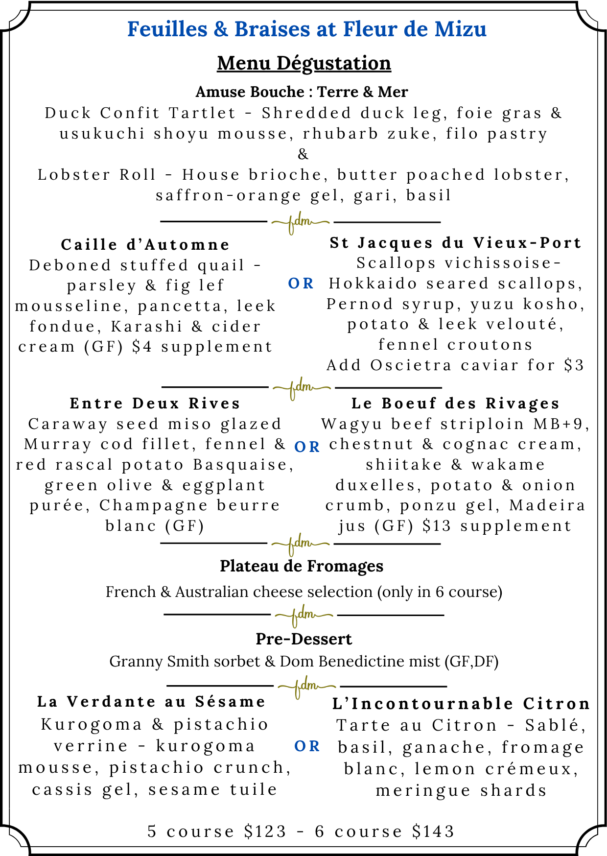Explore a French–Japanese fusion menu crafted with premium ingredients and thoughtful technique, offering a refined dining experience in Northbridge.